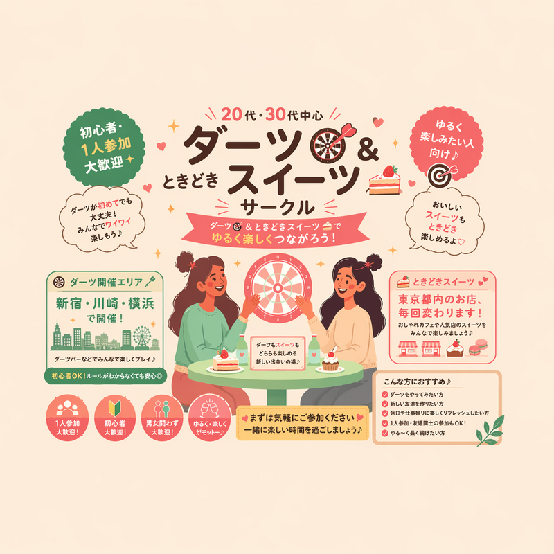 大人数の飲み会って、気を使いすぎて疲れませんか? 盛り上がってる輪に入れなかったり、何を話したらいいか分からなくて気まずくなったり…。 「せっかく来たのに結局誰とも仲良くなれなかった」なんて経験、ありますよね。 アラサー社会人の“ちょうどいい”仲間づくりは、 そんな人のための【少人数・10名限定】のサークルです。 ここでは、いきなり盛り上がるゲームや無理な連絡先交換は一切なし。 最初に軽く自己紹介をして、MBTIや動物占いといった“話のきっかけ”を使いながら、自然に会話が広がります。 同世代だから共感しやすく、少人数だから一人ひとりとちゃんと話せる。 ここで出会った仲間と、恋愛や仕事の悩みを気軽に相談したり、「ちょっと聞いてほしい」を安心して話せるのも魅力です。 さらに主催者は、恋愛から仕事まで幅広く相談にのれるコーチングのプロ。 「友達を作る場」として楽しむだけじゃなく、ちょっとした気づきや学びを持ち帰れるのも特徴です。 仕事帰りにふらっと、休日にリフレッシュがてら。 無理せず、ちょうどいい距離感で“気の合う仲間”ができるサークルです。 「大人数はしんどいけど、気軽に話せる友達や相談できる仲間は欲しい」そんなあなたにぴったりの場所です。